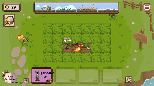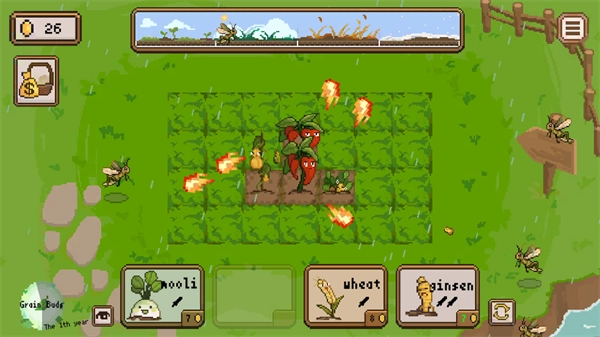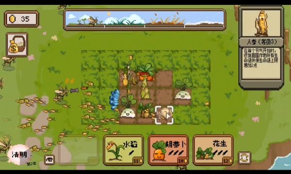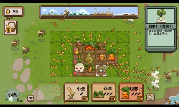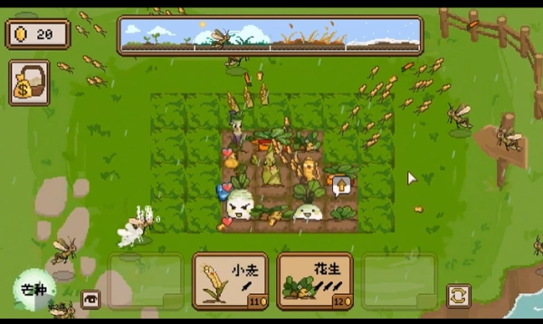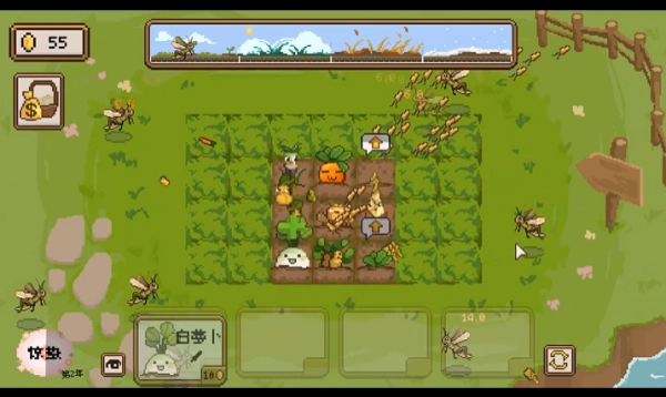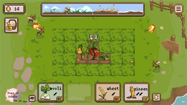 夏季要应对虫群的小规模骚扰,借助植物技能进行清理,同时积累资源来升级农田。