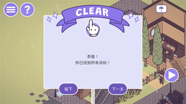在游戏里,你的任务是找出目标清单里的全部物品,每找到一件物品,只要和它进行互动,就能把它标记成已找到的状态。