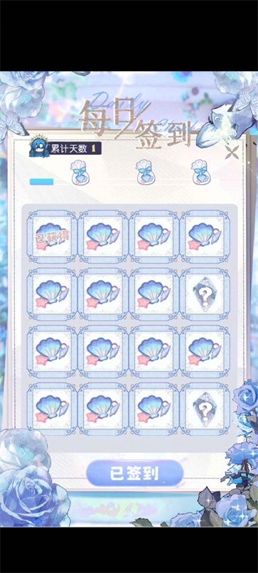 点击左上方签到,玩家可通过每日签到领取贝壳奖励。