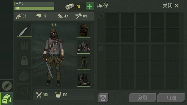 玩家需操纵角色在地图上收集物资、武器、装备。