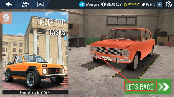 点击【LET'SRACE】按钮即可开启赛车比赛,完成任务能够赢取奖励,记得关注活动剩余的结束时间。