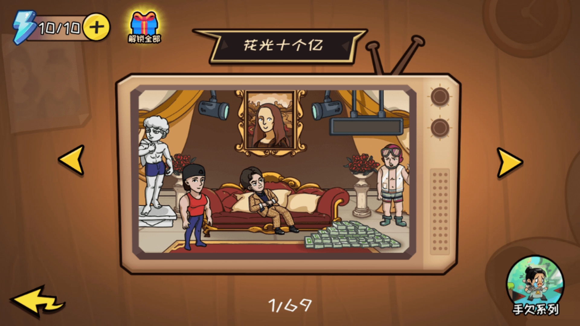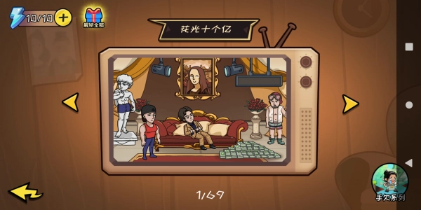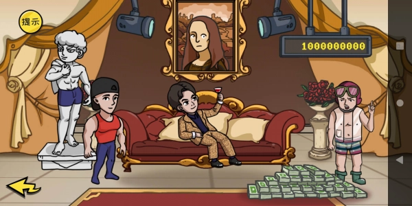 小编挑选了首个关卡任务“花光十个亿”,通过点击场景里的物品来消耗金币,画面右侧会显示剩余的金币数量。