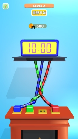 2.游戏设定简洁清晰:关卡中的电线彼此缠绕,玩家需要通过梳理和移动操作,把电线精准插入对应的插座,才能继续推进游戏进度。