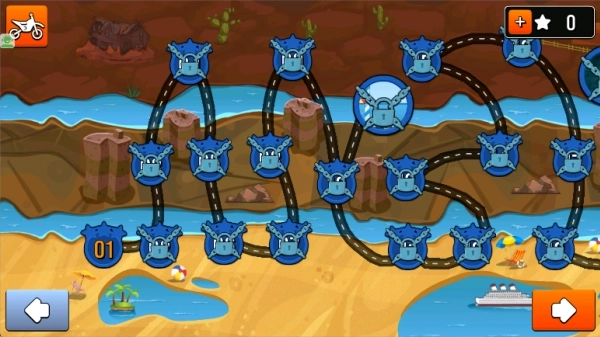 脑力冲关赛是一款2D卡通风格的横版摩托车特技驾驶挑战游戏,有多款造型酷炫的摩托车供玩家挑选。玩家要操控车手在设有坡道与机关的赛道里灵活移动,用最短的时间冲过终点线来赢取丰厚奖励。