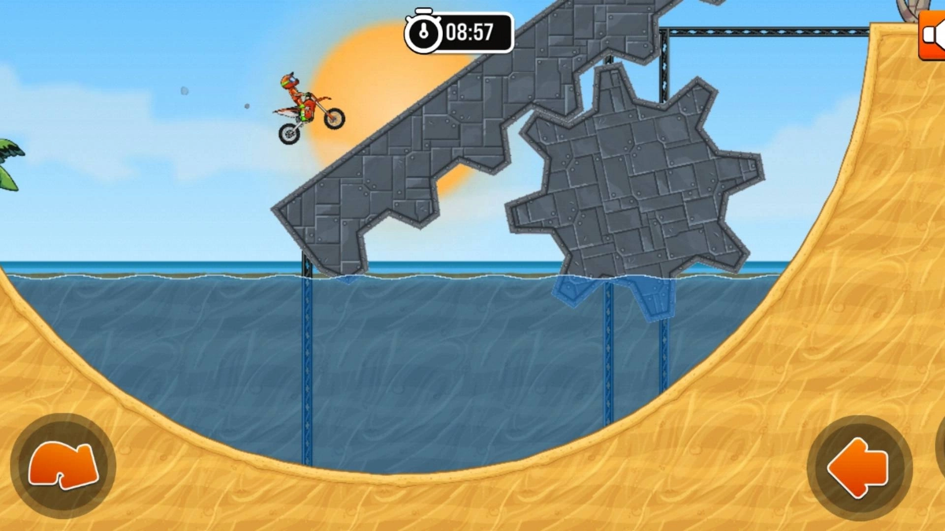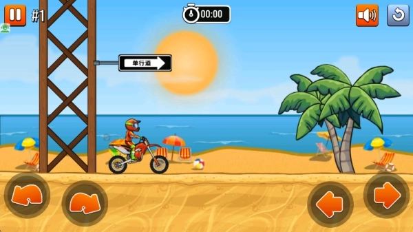4.进入关卡后,利用左右控制按钮来操控摩托车,并且要注意查看屏幕顶部的计时器显示。