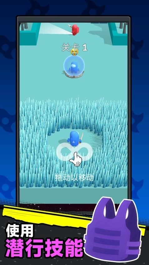 1、启动游戏后进入初始关卡,通过滑动屏幕操控角色移动,快速熟悉三维场景的结构以及基础的潜行机制。