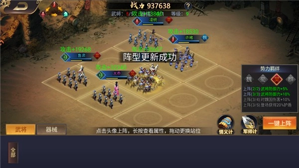 3、通过排兵布阵构建最强阵容与阵型方案,细微的调整便能带来不同维度的属性加成,使战斗过程中能够展现出强大的作战能力与实战效果。