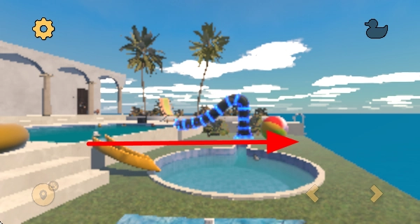 3、通过滑动操作切换镜头,查看不同区域的场景,寻找隐藏的小黄鸭,扩大探索范围。