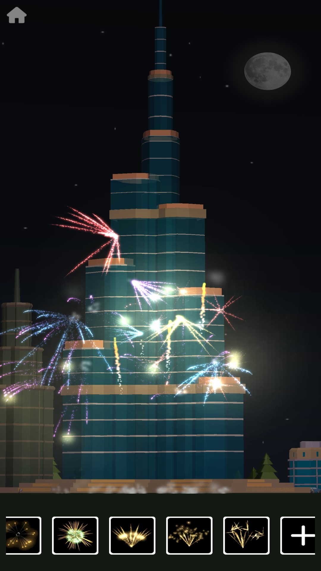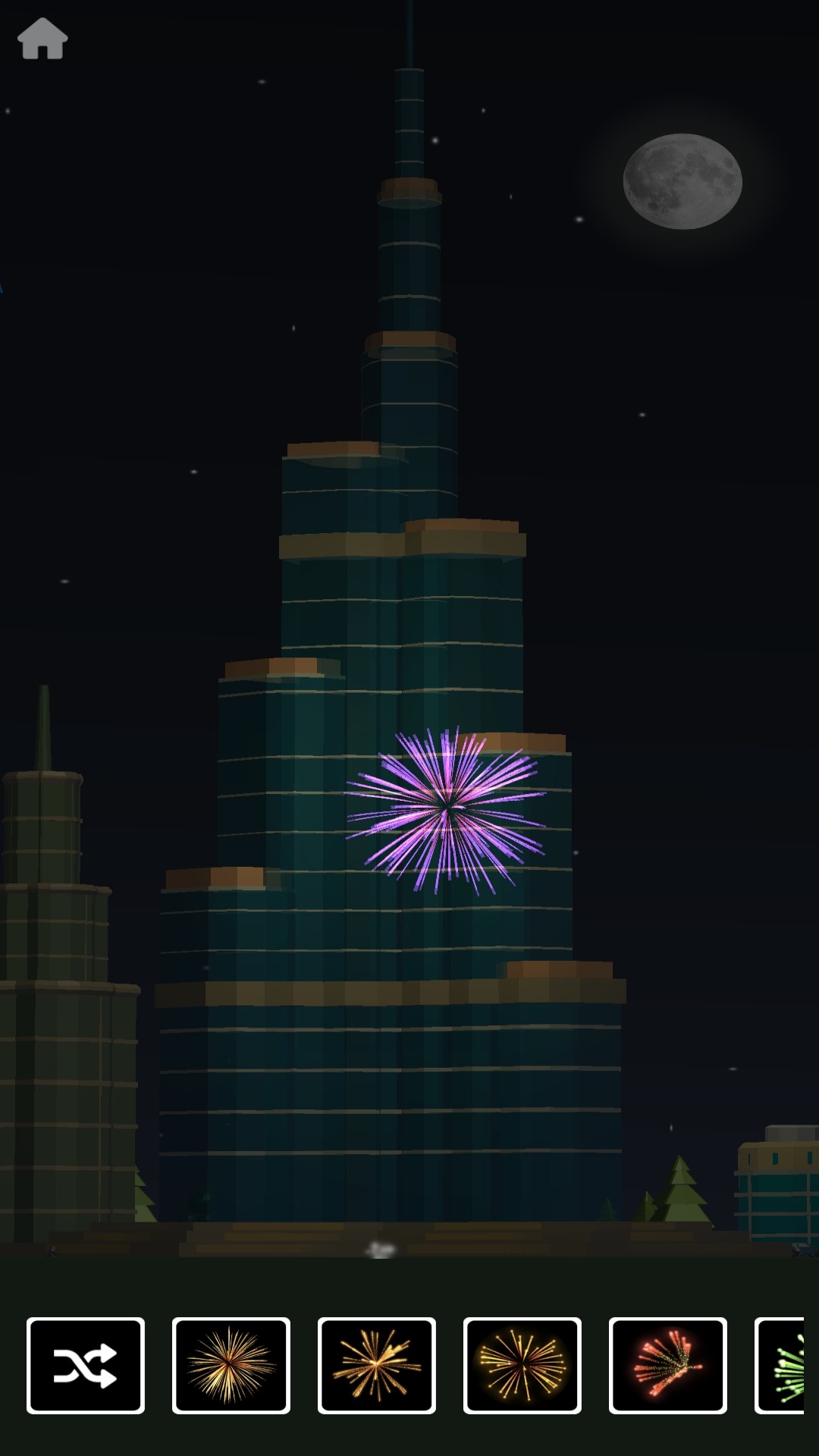 3、每位玩家都能自由欣赏烟花盛会,所有操作都非常简单,你可以燃放所有的烟花。