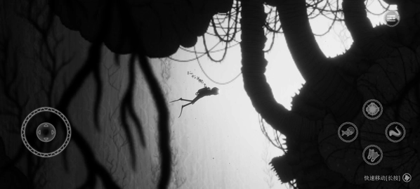 1.采用独特的黑白手绘美术风格,营造出深邃、压抑且充满想象力的海底世界