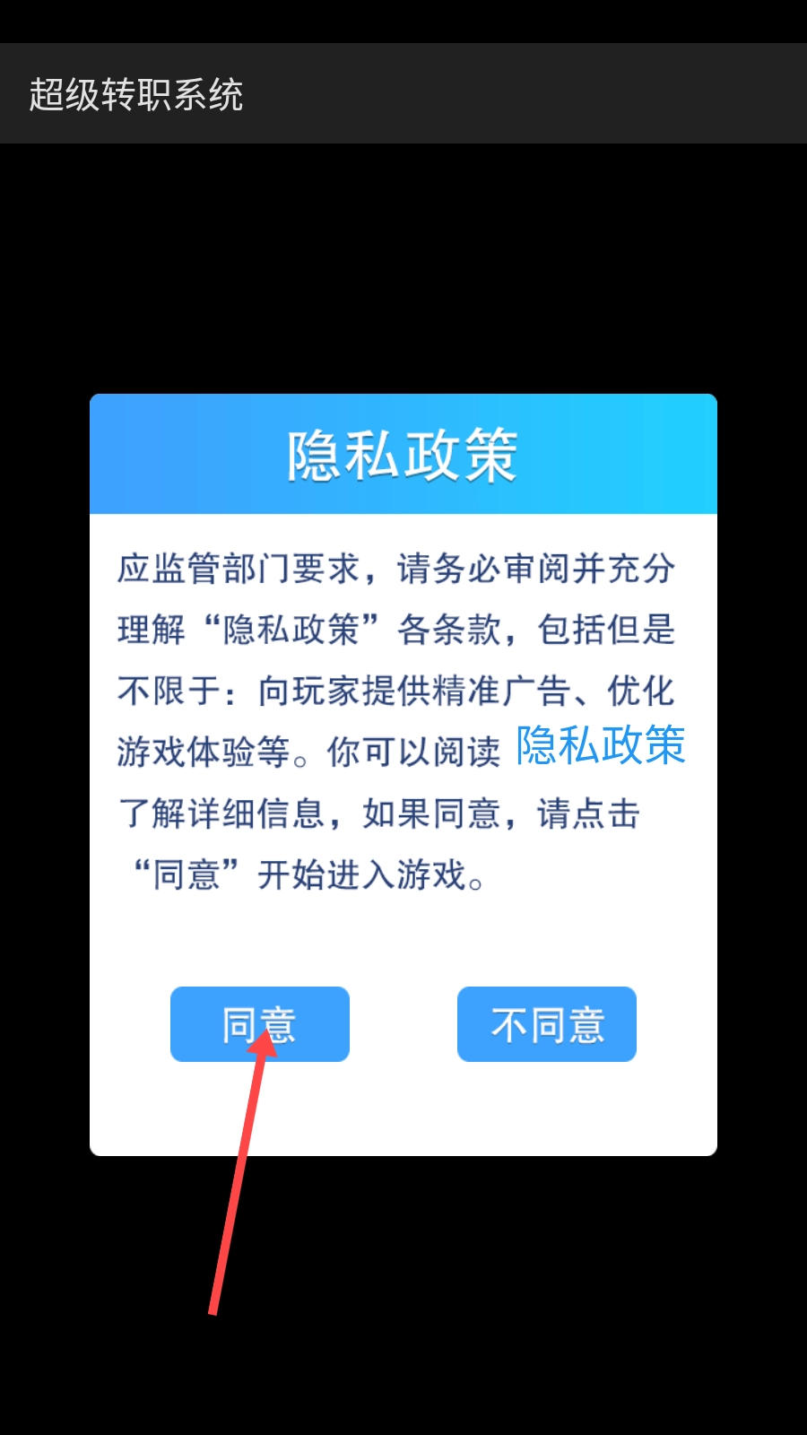 1、进入游戏,点击【同意】。