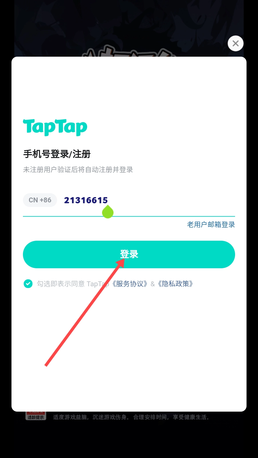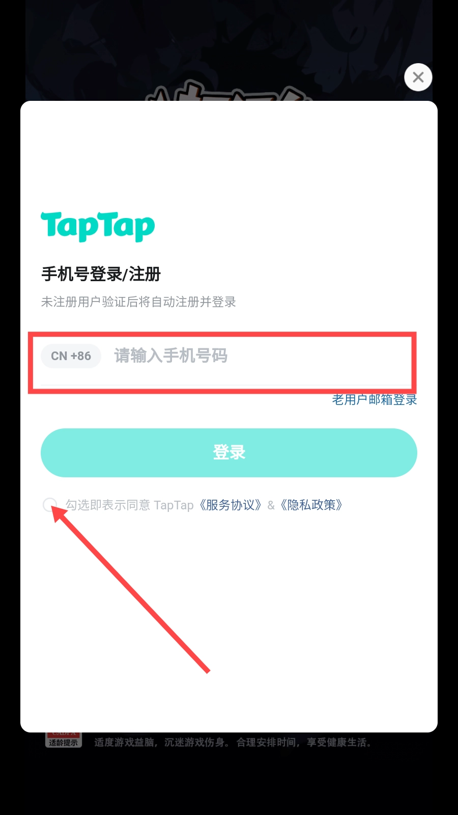 2、输入电话号码,勾选同意用户协议。
