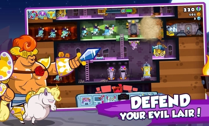 2、你能够通过解锁、升级并定制陷阱、部队与城堡,持续增强自身实力,进而成为终极邪恶天才。