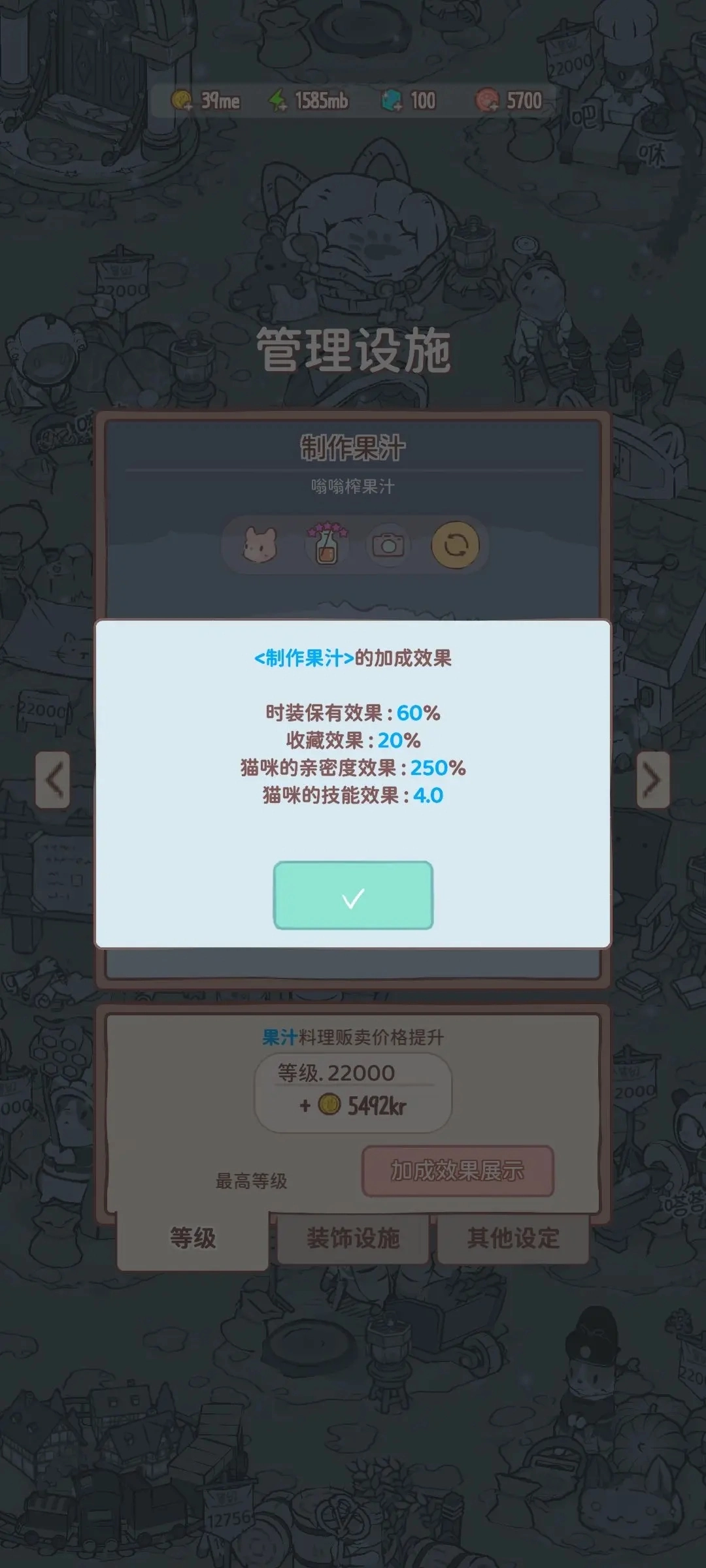 打开《猫咪和汤:魔法食谱》游戏,进入游戏界面后,点击右上角的菜单按钮,接着点击设置选项。