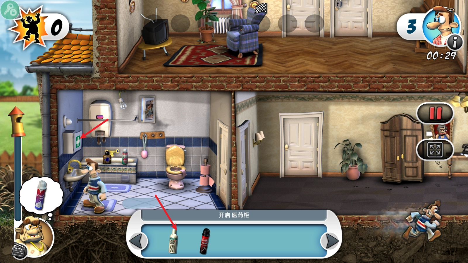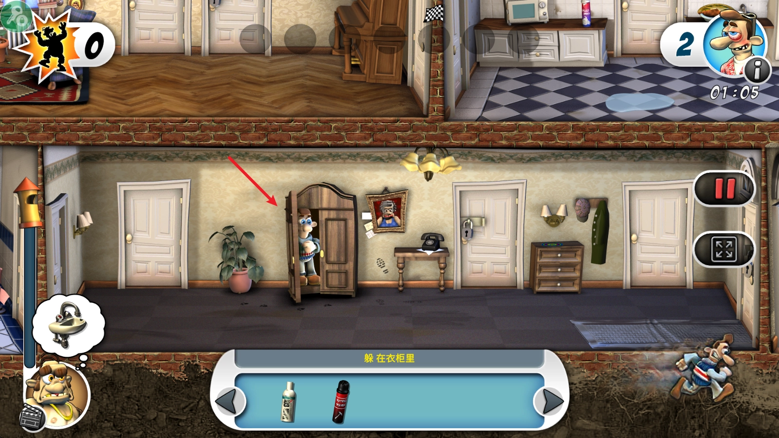 在游戏里,我们得去搜寻场景中的各种道具,用这些道具来完成恶作剧。