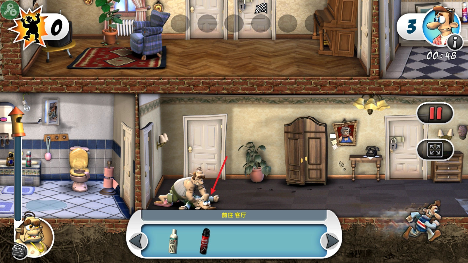千万得小心点,别被邻居逮到了,不然肯定要挨一顿揍,而且每一关只有三次被抓的机会哦。