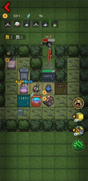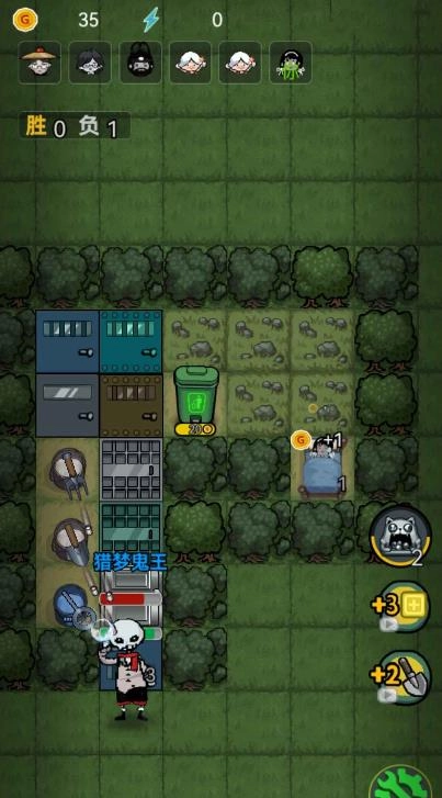 7、持续打开垃圾箱获取更多建筑以进行升级,击败猛鬼即可赢得胜利。
