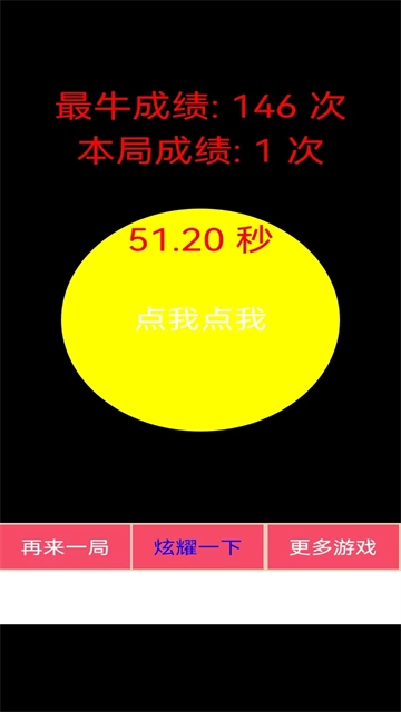 2、在规定的时间内疯狂点击屏幕,上方记录你的最佳成绩和当前成绩;