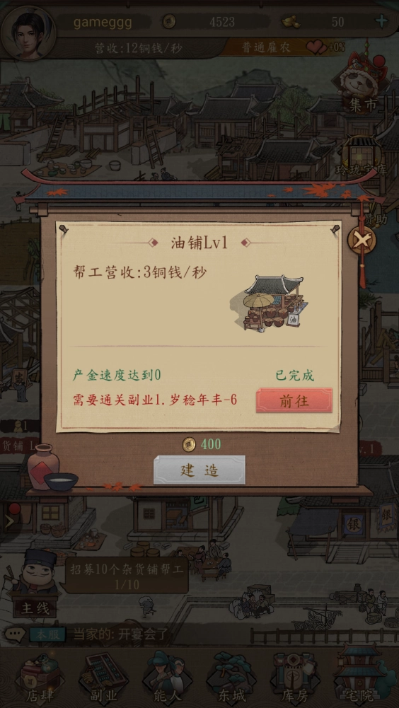 有了足够的铜币后我们就能够去开设新的商铺了。