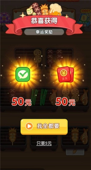 游戏里的红包采用百分比兑换机制,玩家通关会有额外奖励,只要解锁全部烤串图鉴就能领取该奖励。