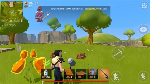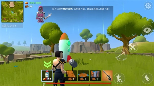 在这片战场上奋力拼搏吧,你得收集足够的工具去打造火箭,然后乘着它启航离开这里。