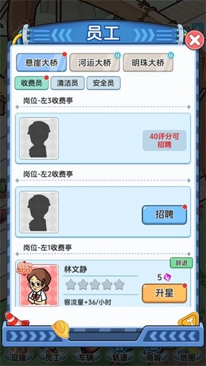 点击员工可以招募不同的员工来进行管理。