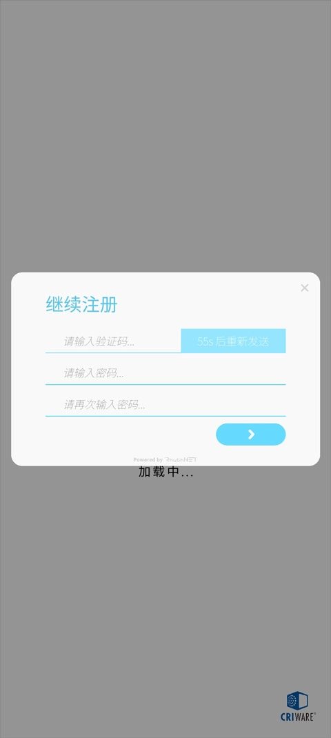 所以填写验证码、设置密码,再点击右下方的箭头,就能完成注册了。