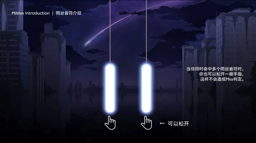Milthm是一款画风细腻、手感丝滑的二次元音乐节奏。游戏以“雨”为主题,用简约的线条和清新的画面为玩家带来耳目一新的游玩体验,在操作方面,这款游戏采用了非常规的下落式玩法机制,玩家需要伴随悦耳的音乐节奏精准点击每一个下落的音符,完成歌曲挑战。游戏还支持玩家自由调整音符的下落速度和大小表现,即使手机性能不同也可以获得最优质的游玩体验,尽情沉浸在音乐海洋中。