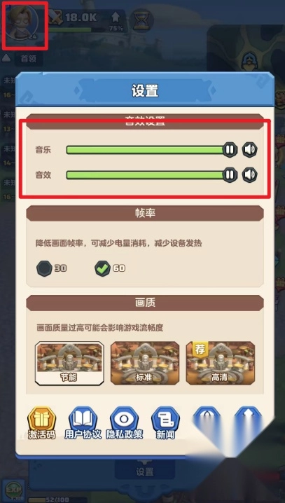 A:在游戏进行时,要是需要调整音乐或者音效,可以点击【左上角的头像】,然后进入【设置】页面,再找到【音乐、音效】选项来进行调整。