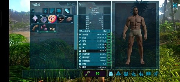 资源储备充裕,饱食度达到满值,可自由选购装备、打造属于自己的恐龙军团。