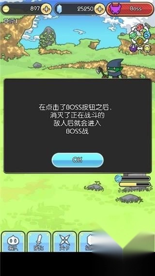 4、点击boss按钮后,会清除当前所有敌人,随即进入boss战斗环节。