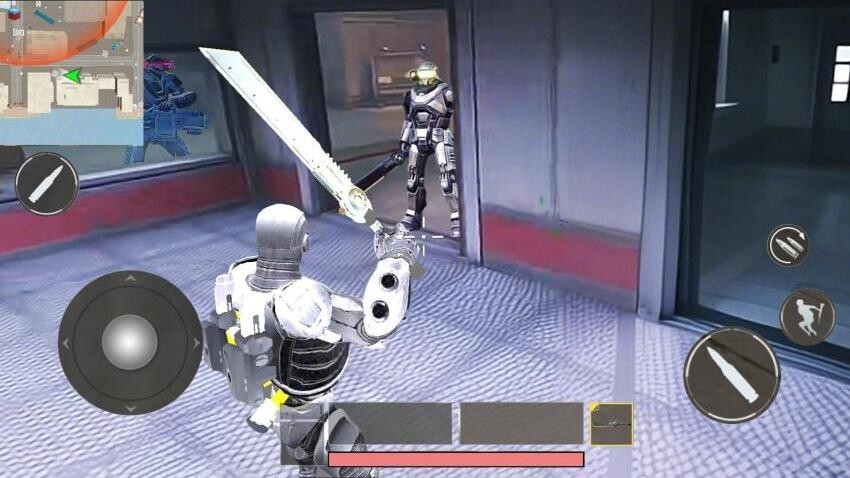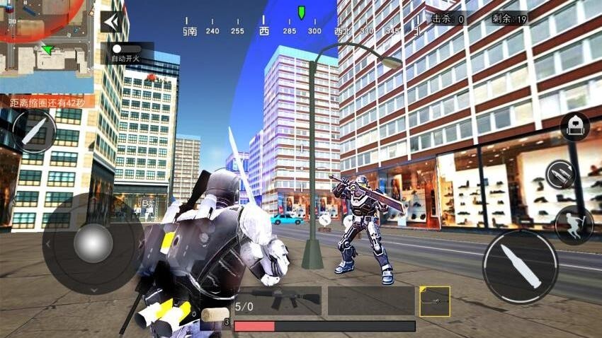 2. 通过虚拟摇杆操控机甲进行移动,于废墟战场里寻觅敌方以及补给资源。
