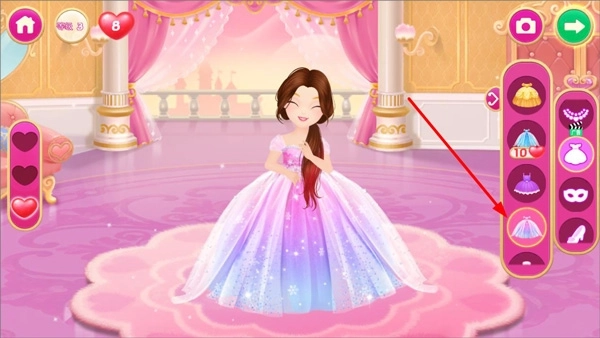 3、打开裙装功能栏,玩家可以根据莉比小公主的发型搭配,选择合适的裙子;