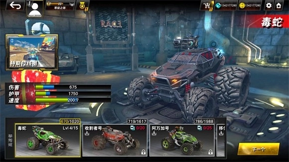5、点击车辆后能对车辆进行升级和解锁套件。