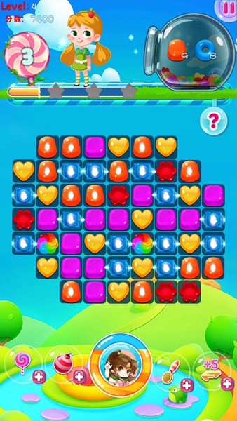 2、尝试各种好玩的消除方式,以达到所有的关卡目标,度过一个快乐的消遣时间。