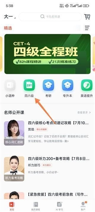 3、如果你想提升四六级,那就点击四六级板块。