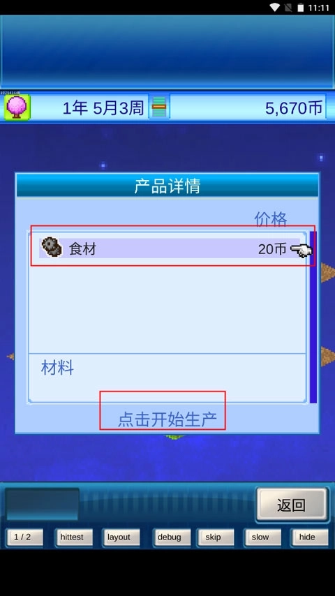 2、选择你想要生产的商品并点击开始生产。