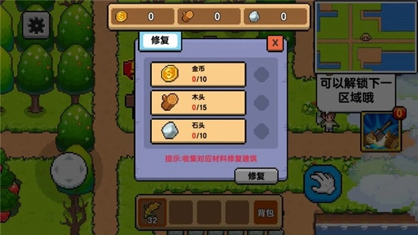 3、通过消耗货币解锁新的地图与街区,同时收集用于修复老旧设施的各类材料。