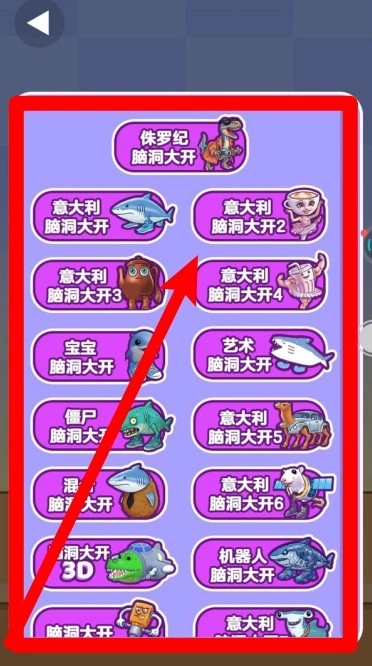 1.模式列表可通过上下滑动进行选择,进入“意大利脑洞大开”等主题关卡后,能解锁全新素材与目标规则,感受各具特色的合成节奏。