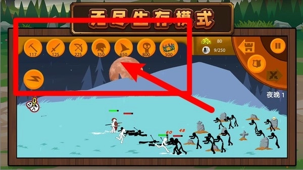 2.点击上方的兵种图标进行选择,消耗对应的资源来召唤单位,要合理搭配各类兵种,以此应对战场上出现的不同敌人。
