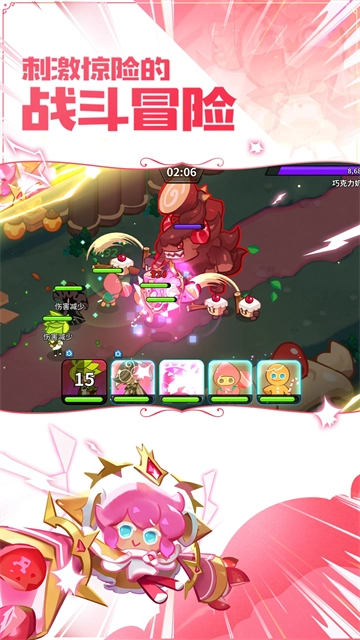 冲呀饼干人王国(CookieRun:Kingdom)是一款以角色扮演为主的卡牌经营游戏,这款游戏的主要内容是玩家将成为勇敢且富有正义的饼干,面对强大的魔女饼干,解救出自己的伙伴。游戏的画风可爱,场景丰富,背景音乐轻松悠闲,带给玩家沉浸式的游戏体验。游戏中还有不同的角色,这些角色有不同的形象和个性,玩家可以自由地选择,游戏没有任何的限制。游戏的不同玩法带给玩家不同的游戏体验。