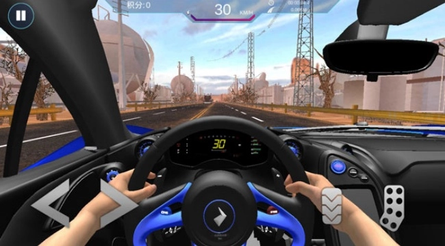 玩家要根据实际情况决定是否可以超车,倘若超车条件不具备则游戏结束。关于游戏中的驾驶操作,看图,左侧代表着驾驶控制方向,右侧则是驾驶的油门和刹车。