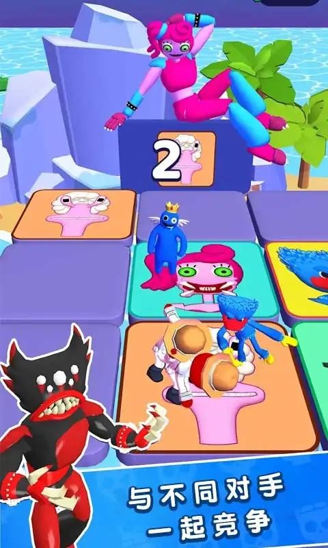 2.广阔的地图场景,各种独特的机关遍布其中,灵活地躲避其中的危险,将你的对手推下赛场。