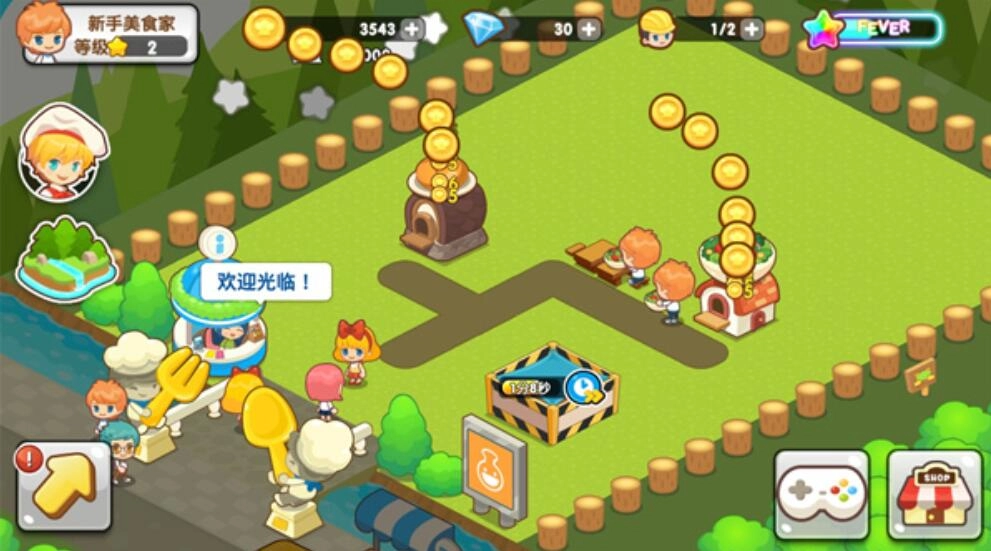 3、客流量是影响收益的重要因素,也是提升收益的关键所在。通过为顾客提供指引和收集相关信息的方式,能够逐步积累顾客的好感度;当好感值达到满值时,就会触发购买热潮,也就是FEVER状态,在此期间能在短时间内获取高额收益。此外,当等级提升到一定程度后,玩家可以着手建造新的美食屋,但需要注意的是,初始阶段每个玩家仅配备两名建筑师,如果想要额外购买建筑师,需要消耗大量钻石。