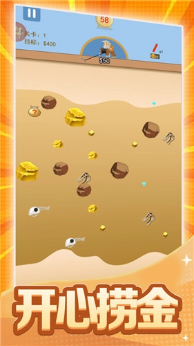 4. 操作十分简便,在甩钩的过程中,只需瞄准黄金,点击屏幕即可松开钩子抓取黄金。