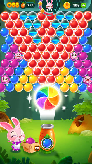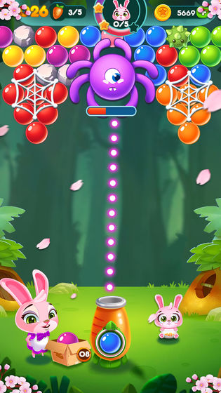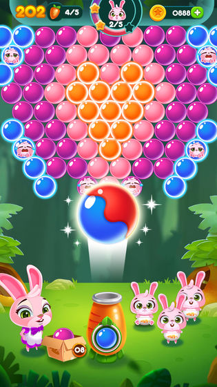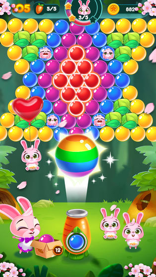 您的每一个泡泡都会让兔子们离幸福更近,瞄准、匹配并打碎泡泡,帮助它们收集胡萝卜。