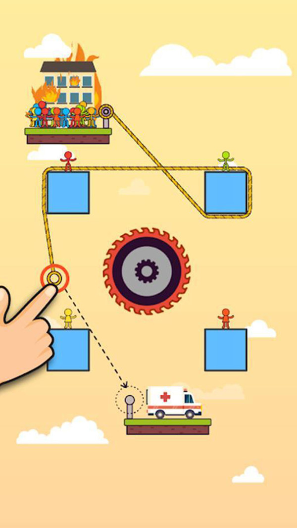 玩家只需要使用那些不同的绳索来帮助自己顺利的拯救更多的小人们;