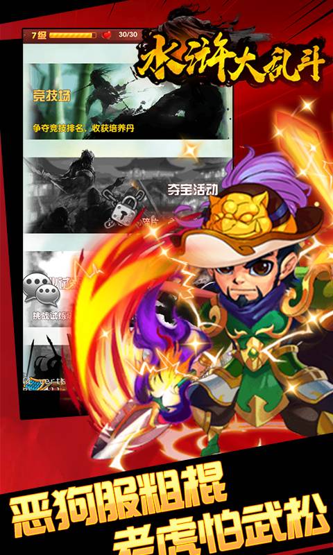 水浒大乱斗是一款武侠的乱斗游戏,这个游戏里有很多水浒里的人物。这些角色以动漫q版的形式出现,玩家可以通过抽卡的方式获得这些角色。每个角色都被赋予了独特的技能。玩家可以在战场上合理安排这些角色,让他们自动攻击附近的敌人。欢迎对这款游戏感兴趣的朋友下载!