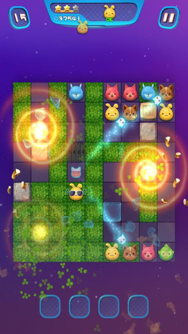 3、简单的滑动将各种可爱动物进行连接,消除指定数量完美通过。