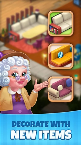 1、完美匹配并获得更多星星,让你解锁更多神秘道具,展示你的设计技巧,用最简单的装饰创造一个更完美的庄园。